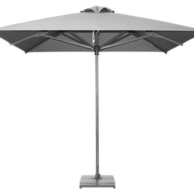 Πρόκειται για ομπρέλα βαρέως τύπου η οποία λειτουργεί με σχοινάκι και προσφέρει μεγάλη αντοχή ενάντια στον αέρα σε διαστάσεις μέχρι τα 4 μέτρα. Σκελετός αλουμινίου με κολώνα Φ48mm Διαθέτει 8 ακτίνες απο προφίλ αλουμινίου 30Χ15mm, όλες με ειδική επένδυση ενισχύσεων.Οι ενισχύσεις της ομπρέλας γίνονται απο προφίλ αλουμινίου 40Χ20mm οι οποίες αγκαλιάζουν τις ακτίνες και τις προστατεύουν απο την πίεση του αέρα. Πλαστικοί σύνδεσμοι, ανοξείδωτες τροχαλίες και πυράκια, βάσεις είτε κινητές είτε σταθερές δίνουν το τελικό φινίρισμα.