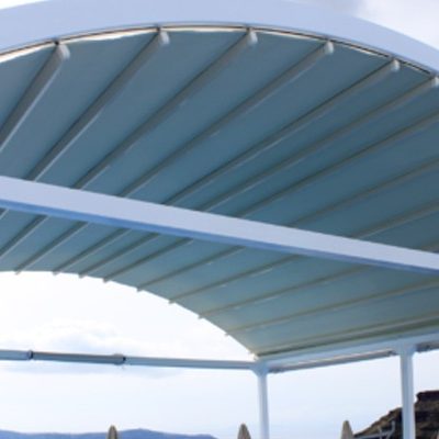Αυτόνομη κουρμπαριστή τεντοπέργκολα για μεγάλα μήκη προβολής έως 6.00m. Ιδανική για ελεύθερους χώρους. 100% κατασκευή αλουμινίου.